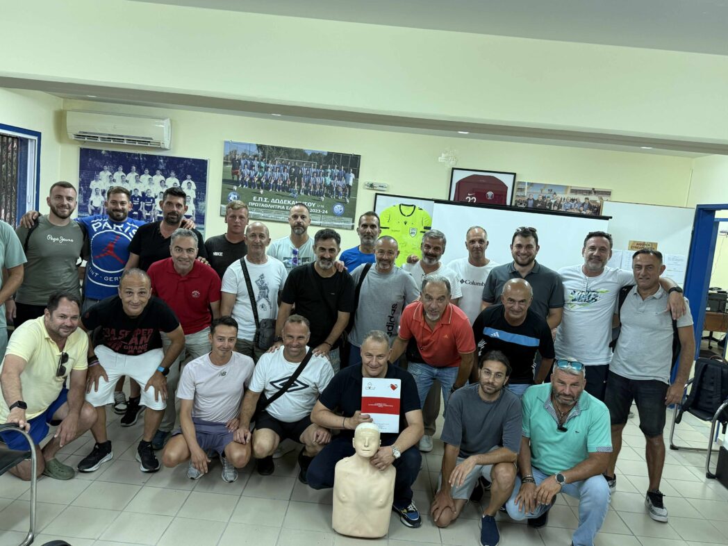 Ολοκληρώθηκε επιτυχώς το σεμινάριο Πρώτων Βοηθειών, εχθές Τετάρτη 16 Ιουλίου 2025, στα γραφεία της Ε.Π.Σ.Δ., με πρωτοβουλία της Ένωσης Ποδοσφαιρικών Σωματείων Δωδεκανήσου σε συνεργασία με το Σύνδεσμο Προπονητών Ποδοσφαίρου Δωδεκανήσου. Το σεμινάριο, προσφέρθηκε δωρεάν στα μέλη του Συνδέσμου Προπονητών Δωδεκανήσου από την ΕΠΣ Δωδεκανήσου.